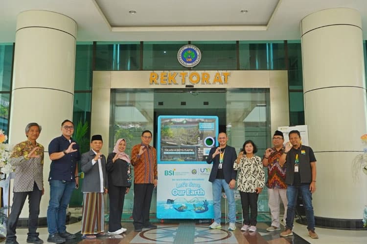 MALANG – Universitas Negeri Malang (UM Malang) mencatatkan inovasi baru dalam pengelolaan sampah plastik dengan menghadirkan mesin penukar botol plastik. Program ini menjadikan UM sebagai kampus pertama di Malang yang mengoperasikan teknologi ramah lingkungan tersebut, hasil kerja sama dengan Bank Syariah Indonesia (BSI).