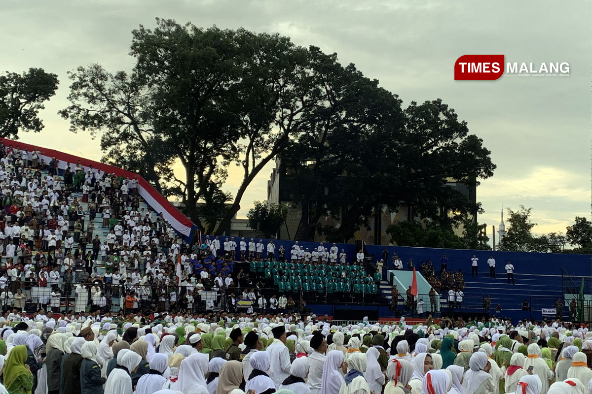 MALANG – Paduan Suara Mahasiswa (PSM) Universitas Islam Malang (Unisma) mencuri perhatian kala memandu nyanyian lagu kebangsaan Indonesia Raya dalam acara Mujahadah Kubro 1 Abad NU di Stadion Gajayana Malang, Minggu (8/2/2026) pagi.